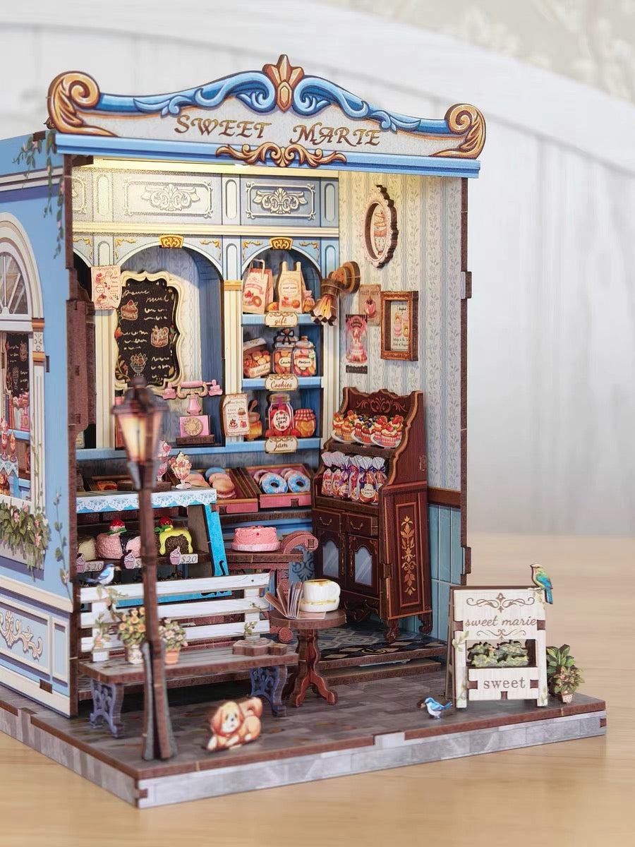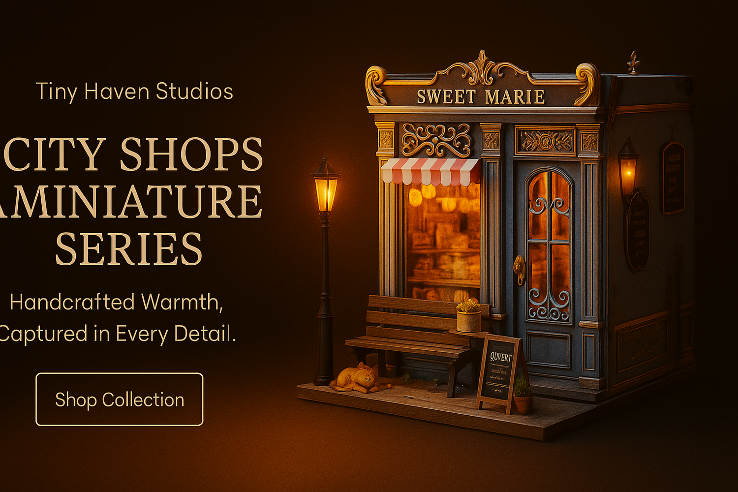 View DetailsA warm, glowing corner bakery filled with tiny breads, cakes and a sleepy cat by the door. Perfect for anyone who loves cozy European streets and dessert-themed decor.