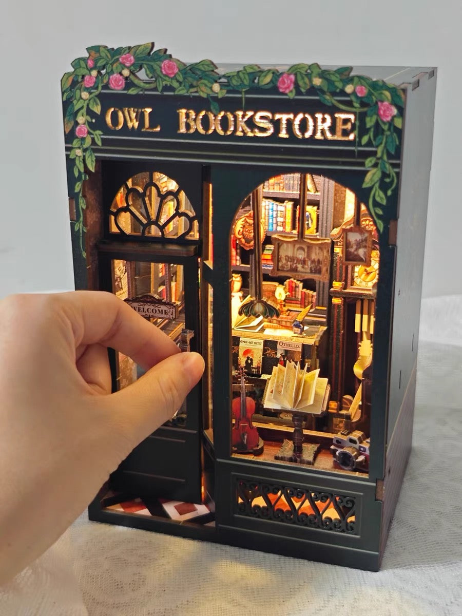 View DetailsA tiny night-time bookstore with golden lamplight and shelves full of miniature books. Ideal for book lovers, writers and anyone who dreams of a quiet reading corner.